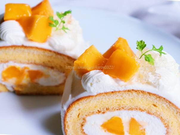 最高級のマンゴーと言われる宮古島産のマンゴーを贅沢につかったママンこだわりのロールケーキ♪