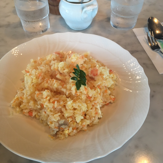 メニューはいつも迷うけど、今回はエビピラフ