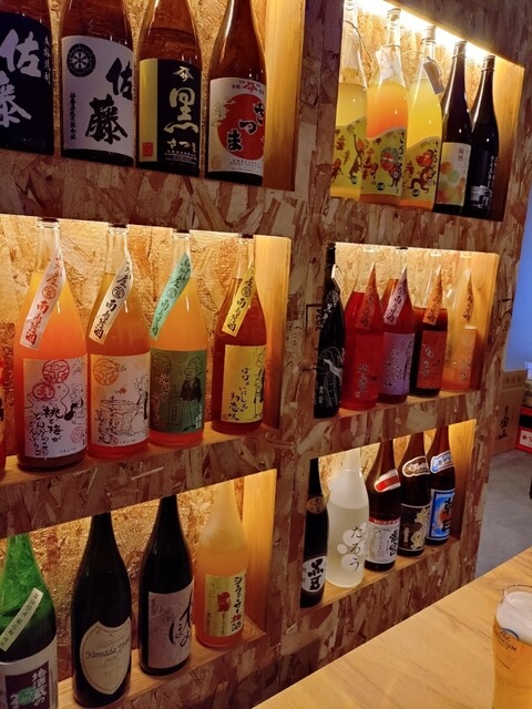梅酒の瓶が並ぶ賑やかな席でお一人様スタート。