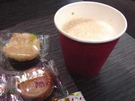 クレジットカードで入れるラウンジなので、ちょいショボいけど無料で珈琲やお菓子を食べれるのは有難いですね!