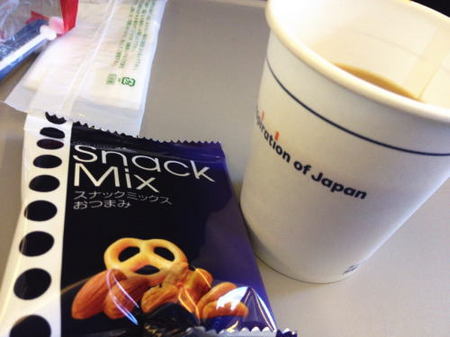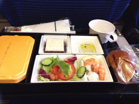 飛行機に乗り、書き物をしてるとすぐに食事タイムです。