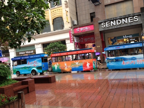 このバスはこの辺りをゆっくりぐるりと周ってくれるみたいです。