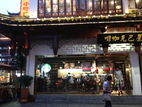 スターバックス豫園1店。いつも、どの時間も混んでいるっぽい。