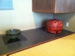 1階にはカウンター席もありますね。あちこちに蛙さん。
