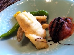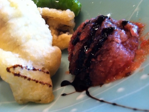 温かい天ぷらと冷たいシャーベットソース組み合わせが楽しい♥