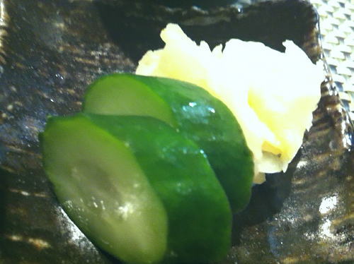 春キャベツの甘酢漬けと胡瓜のぬか漬け。