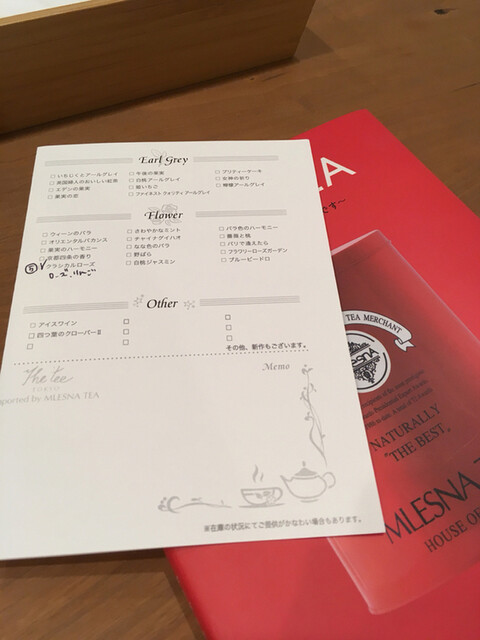 紅茶の種類を後で分かるようにと、メニュー表とペンもちゃんと用意してあります。