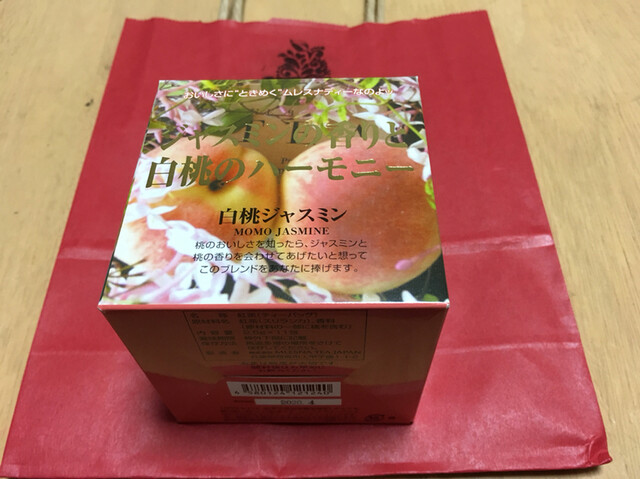 帰り際にお土産用のティーバッグを探しましたが、パッケージのインパクト大ですね。大阪な感じします。これも新鮮。気に入った白桃ジャスミンを買って帰りました。