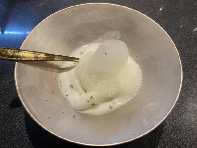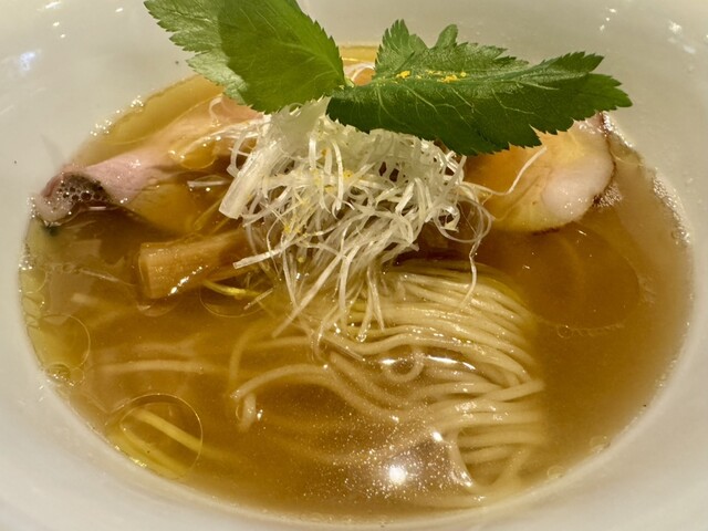 ミントの葉が添えられ、ミシュラン後の「塩Soba」にミントが乗っていたのを思い出しました。
