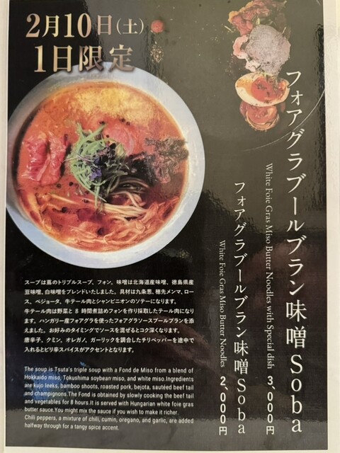 最近は昼の部でも限定を提供している「Japanese Soba Noodles 蔦」。