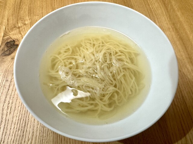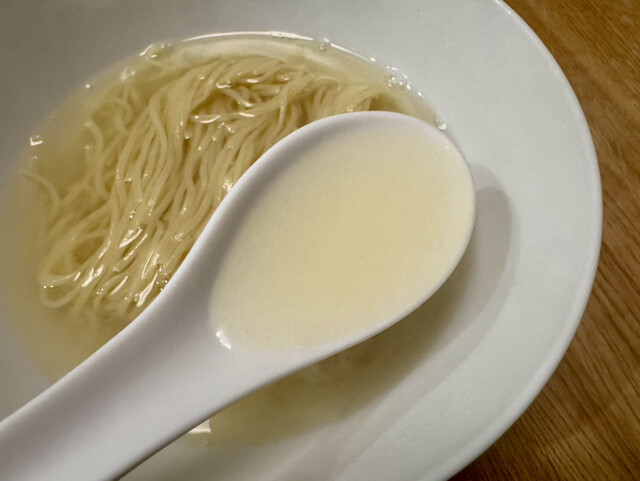 ロゴの無い丼には軽く濁りある清湯スープ。
