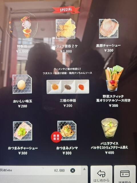 メニューは「醤油Soba」2000円に「塩Soba」2000円の2品。