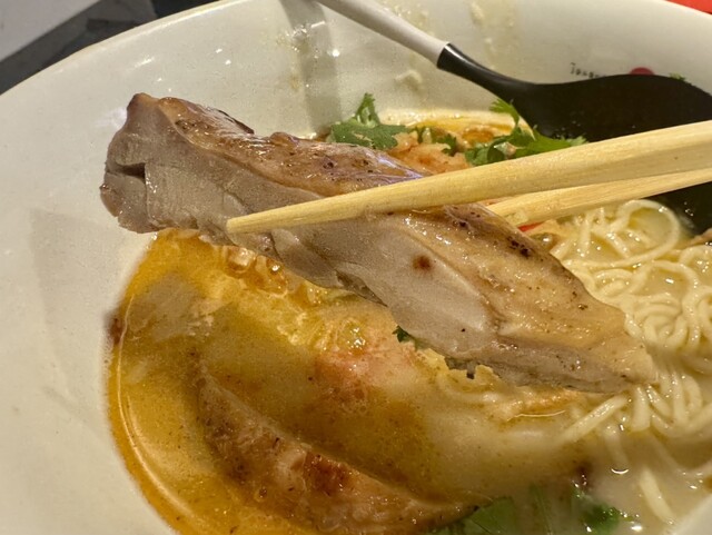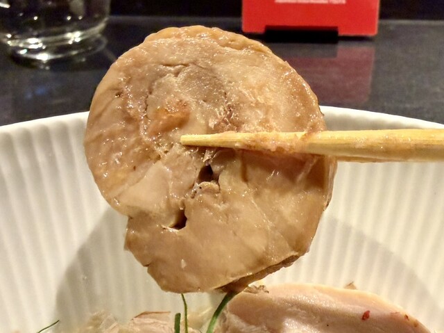 鶏ムネチャーシューは2枚入り、ちゃんとパサらずしっとり柔らか。