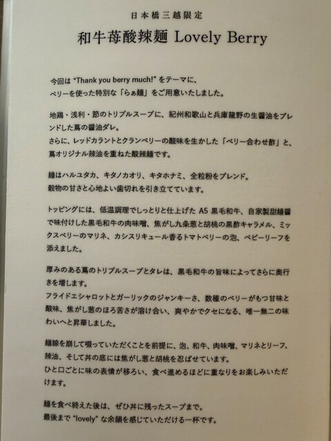 「和牛苺酸拉麺 Lovely Berry」2750円(全て税込価格)