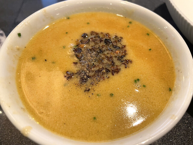 まずは茸ペーストを溶かさずスープを飲むと、優しく上品な魚介の旨味。