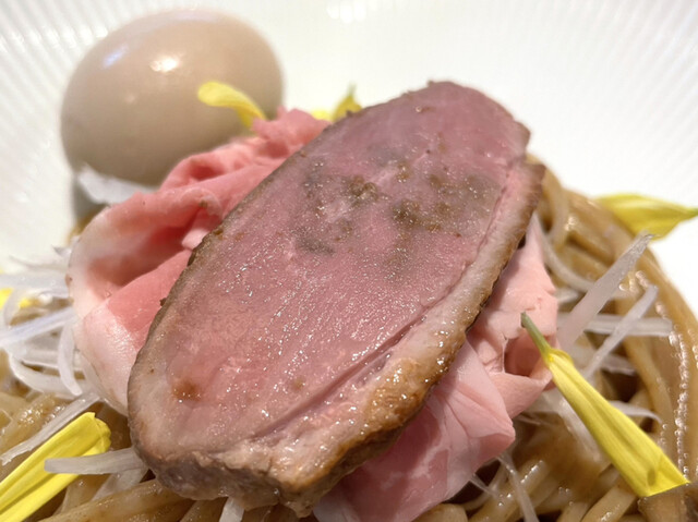 二種の黒豚チャーシューに九条ネギ、品川江戸前海苔、青森シャモロック味玉。