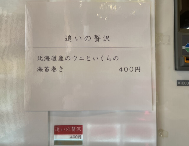 「らの道 DECADE 中華そば 四つ葉×鉢ノ葦葉」<混血>前菜・肉プレート・ラーメン・デザート、追いの贅沢 北海道産のウニといくらの海苔巻き