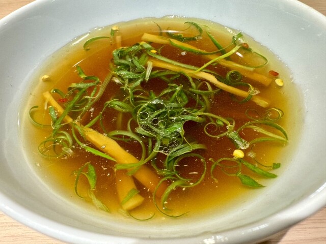 鶏と昆布がブレンドされ、塩ダレ由来の魚介乾物も良い余韻となります。