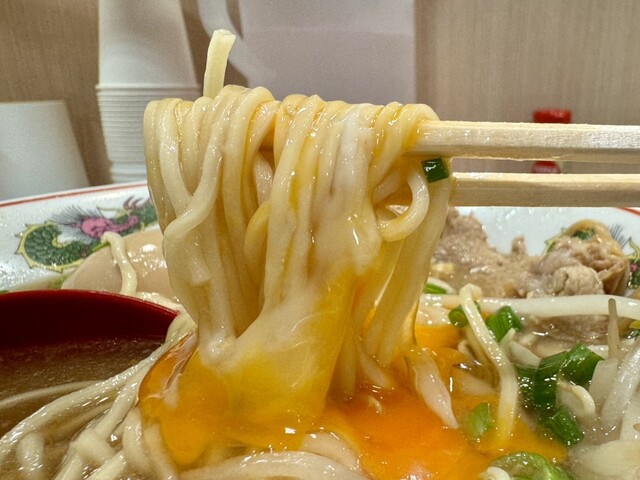 見た目は京都「第一旭」に代表される「アキラ系」に似ているもタレは強すぎず、ガツンではなくじんわり旨いタイプです。