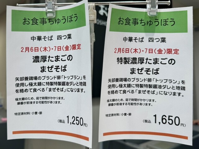 「四つ葉」は味玉がサービスとなります。