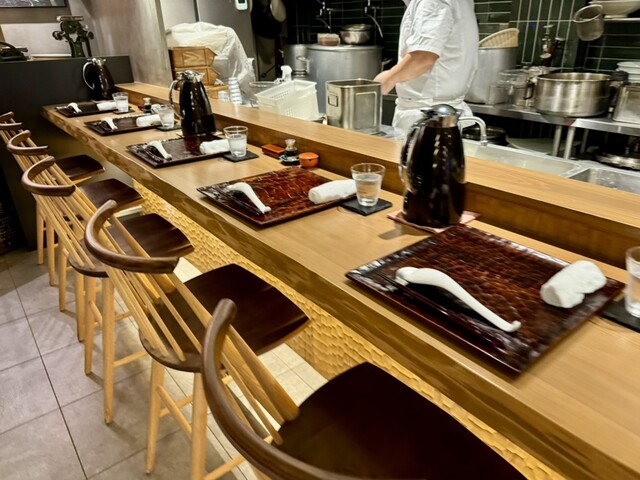 店内は旧店舗より広くなり、ラグジュアリーな雰囲気漂うカウンター13席。