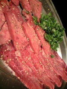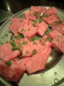 安い。おまかせで頼んだら、タンやら塩系、そして赤身系、最後にホルモンが出て一人2500円くらい(伝票ないので予想)。え…その値段でこの霜降り肉?焼きタンとタン刺のタン同じやし!ひゃ〜♪