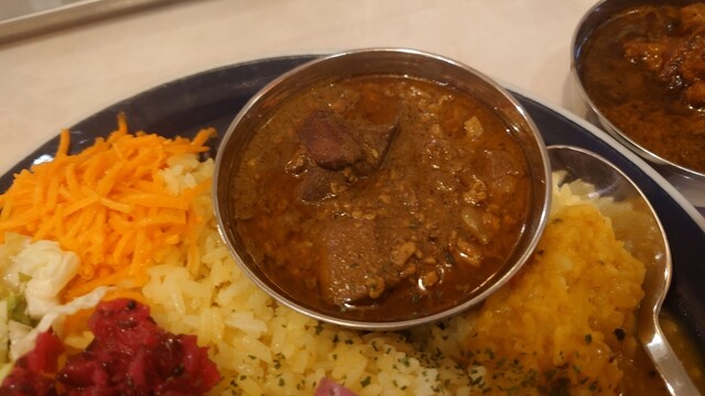 さっそく、カリ~から頂くと、お肉の旨味がいっぱいで、ビーフシチューよりな印象。