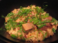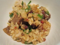 牛タンをのせたポルチーニ茸と里芋の炊き込みご飯