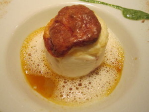 魚料理AIDAの冬の定番料理 鯛とホタテのスフレ 海の幸ソース