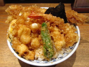日本橋・三越前いある超有名な天丼のお店、天丼金子半之助昼時には2時間待ちが当たり前という大人気の天丼専門店。以前から気になっていて先に訪れた弟からとってもおすすめされていたのでぜひぜひ食べたいと思っていました。ただいつも人気なので前回休日に訪れたときは断念・・・。今回、休日の振替で平日の午後休みを取ったので再チャレンジ!!ということで、午後1時半に店に着くとやっぱり行列・・・行列が苦手なので、また断念しようと思いましたがたまたま前にいたおじ様に「並ぶ価値あるよ、それに昨日より人少ないよ」と、言われて、帰れなくなりがんばって並びました・・・。外から作っているのが見えるしごま油の香りが漂って行列の間、お腹が空きます・・・。平日木曜日、午後1時半現地到着。並ぶこと1時間45分・・・午後3時15分にお店に入れました!!1階がカウンターで2階はテーブル席のようですが希望のカウンター席に運よく吸われました。メニューは江戸前天丼1種類!!プラス100円で大盛り。プラス120円でお味噌汁がつけられます。席に着くと、まず黒豆茶が出ます。このお茶がおいしい!!机の上にはお漬物とガリごぼうが置いてあって好きなだけ食べられますがガリごぼう絶品!!これだけでお茶がすすみます。お茶を飲んでいると目の前で天婦羅を揚げてくれてお茶が1杯飲み終わった頃、待望の天丼がやってきました。江戸前天丼 950円とってもボリューミーです!!築地から毎朝仕入れるという長さ20センチ以上もあるずっしりとした穴子をはじめ、イカと小柱のかきあげ、えびが2本、温泉卵、ししとうとどんぶりからはみ出るようにずっしりと天ぷらが盛られていました。お味噌汁は120円。お味噌汁をつけても1070円って安い!!お味噌汁もたっぷりです。重量感あるあなごは衣がサックサクなのに中は身がふんわり~。たまごの天ぷらなんて初めてで驚きました。たれの量も味もちょうど良くて全部食べてもしつこくない!!天ぷら良しボリューム良したれもおいしいということで、絶品天ぷら~私は好きです。この天丼!!行列嫌いの私ですが1時間半並んでも損した感じはしませんでした。おいしかった~!!3時40分、お店を出るとこの時間なのにまた行列・・・。弟は開店前に並ぶべし!!と言っていたのでまた今度10時半くらいに並ぼうかな~と思っています。