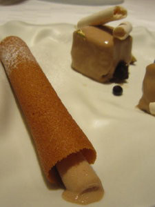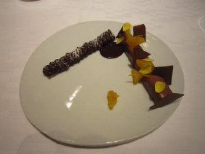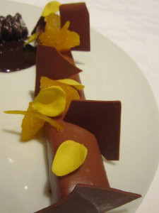 ・柑橘の香りのプラリネショコラバーほろ苦いショコラのソルベと一緒に