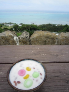 ココナツミルクに大粒小の豆がたーっぷり入ったぜんざい。