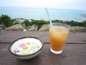 くるくまぜんざいとグァバジュース