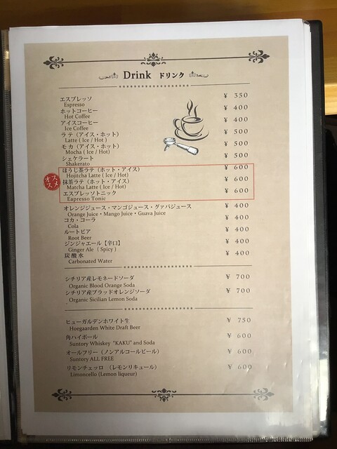 エスプレッソトニックはやや甘口の優しい味です。マンゴージュースは濃厚でした。ワインはカミさん曰く爽やかで軽いスパークリングとのこと。