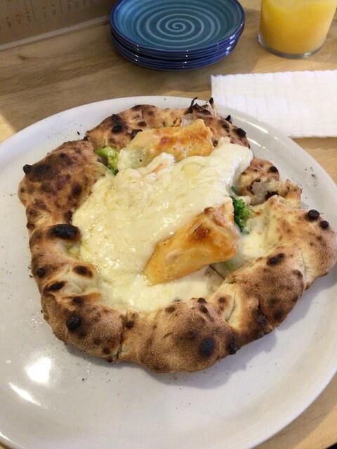 最初にマリナーラが来ました。あっさりして素材の味が生かされていました。続いてマルゲリータです。来沖してこんなに美味なマルゲリータは初めてです。最後にビアンカ。チーズがめちゃくちゃ美味しい。ハチミツで味変しても良いですね。
