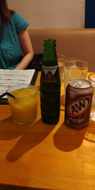 私はルートビア、息子はオレンジジュース、そしてカミさんはワインをがぶ飲みでした。