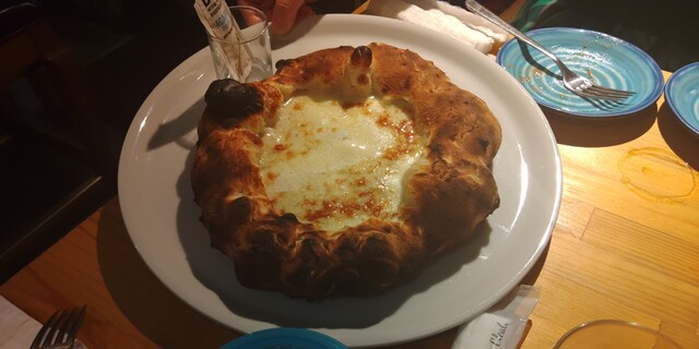 ラクレットチーズを使ったアルプスの少女ハイジのピッツア(3000円)というのが気になったので注文。マルゲリータ(1600円)も頼みました。