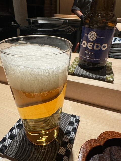 まずはビール。コエドは好き。