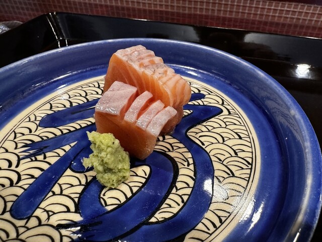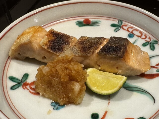 サクラマス走り、身は柔らかく、脂あるね。でもくどくなくてサラッともしてる。ころっと切ってあるので、柔らかくても食べ応えあっていい。通称くいしんぼう切り。