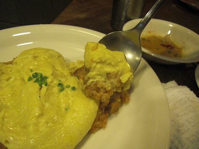 オプションで卵をのせてもらいましたので、とろとろの卵を割って食べました。