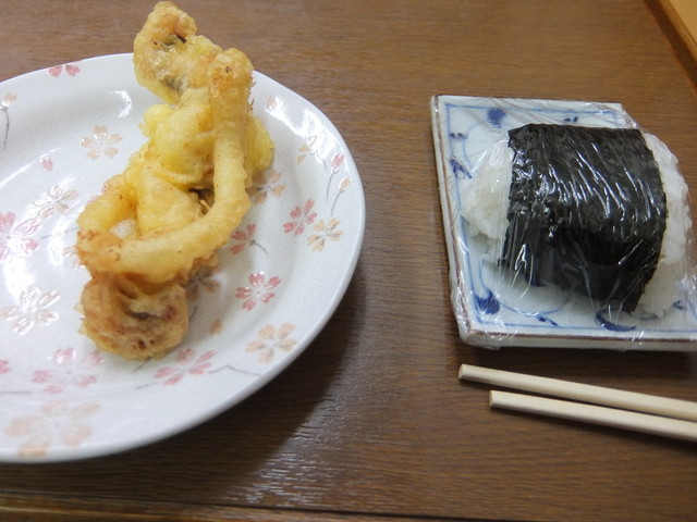 ・げそとおにぎり うどんだけでは少し足りなかったので、一緒に食べましたが