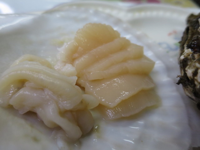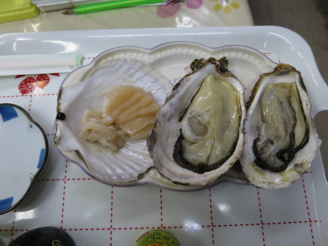・牡蠣 舟盛りの左右に3個ずつのっていて、2つは焼いてもらいました。