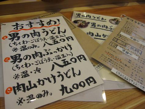 「おすすめ!」メニューから、「男の肉ぶっかけ (温) 850円(⇒本日半額で425円)」をオーダーです。