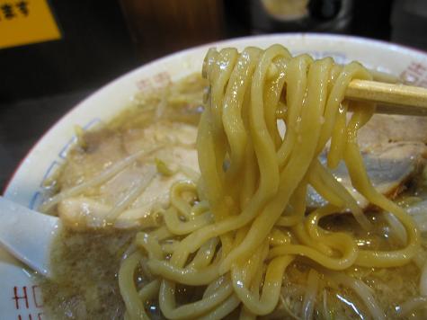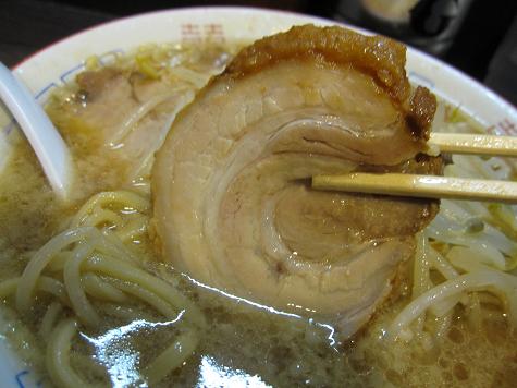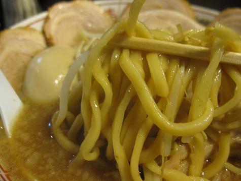 このラーメンの看板で、売りでもある、自家製太麺。これは、モッチモチの食感で、かなりのボリューム。前回、これが、後から、ボディに効いてきたので、今回は、この麺から、先に攻めてみました。相変わらず、歯ごたえ十分の麺は、このトンコツ醤油のスープに良く絡みますな。