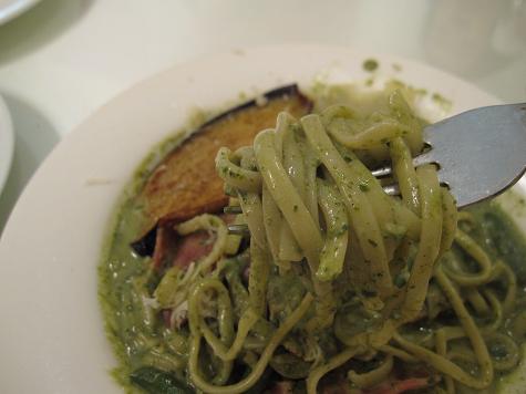 それにしても、このジェノベーゼソースの美味いこと。クリーミーで、味は、ちょっと濃い目なのですが、生パスタに、よく絡んで、しっかりとバジルの風味を感じることが出来ます。ウマ〜。