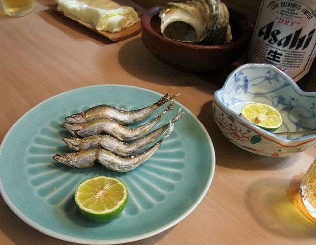 今回の写真に収まったのは、二十数年の訪問歴で初めて見た鮎。あまりに珍しいので、フライと塩焼きにして食った。フライの方は、はらわたがまるでカキフライのような香りと食感で、塩焼きの方はじっくりと焼いた鮎の身に凝縮された魚のうまみがたまらなく日本酒に合っていた。
