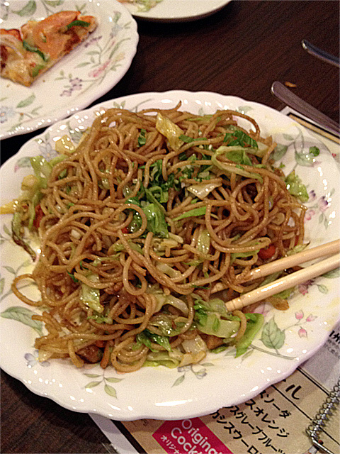 次に出てきたのは焼きカレーパスタ。しかしパスタというよりカレー粉で炒めた焼きそばである。おいしい。ようやくスパイシー的なものが出てきた。