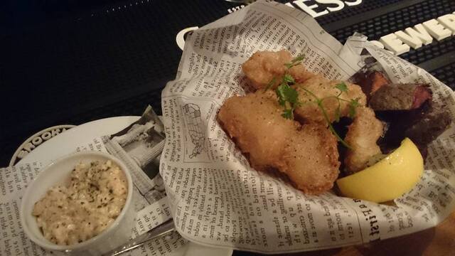 フィッシュアンドチップスは本格的!白身魚の揚げ具合は最適、衣は本格的なフリッタータイプでモルトビネガーもちゃんと付いてきます。だけど、こちらの自家製タルタルソースも付いてくるので、どちらも美味しいから迷いどころです。
