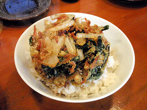 パリッと上がった野菜のかき揚げに適度な甘辛のタレがかかっていました。