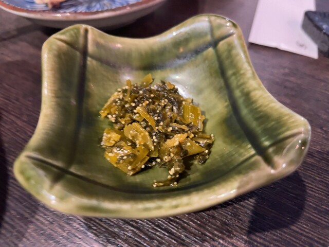 ご飯と共に出された辛子高菜漬け